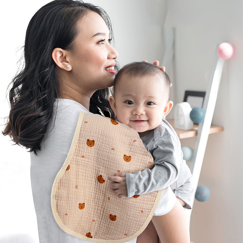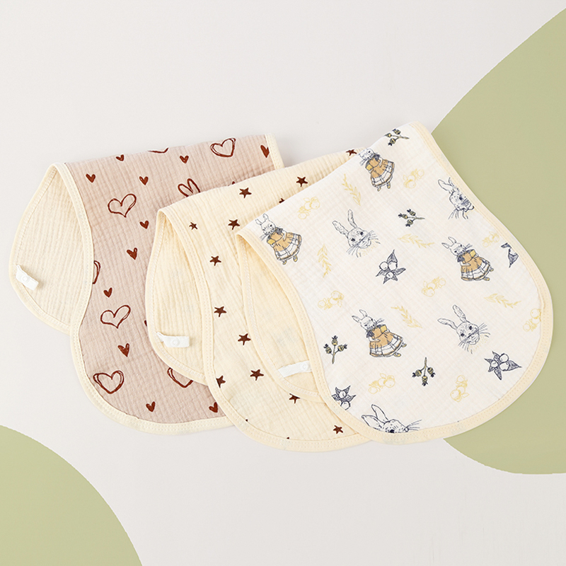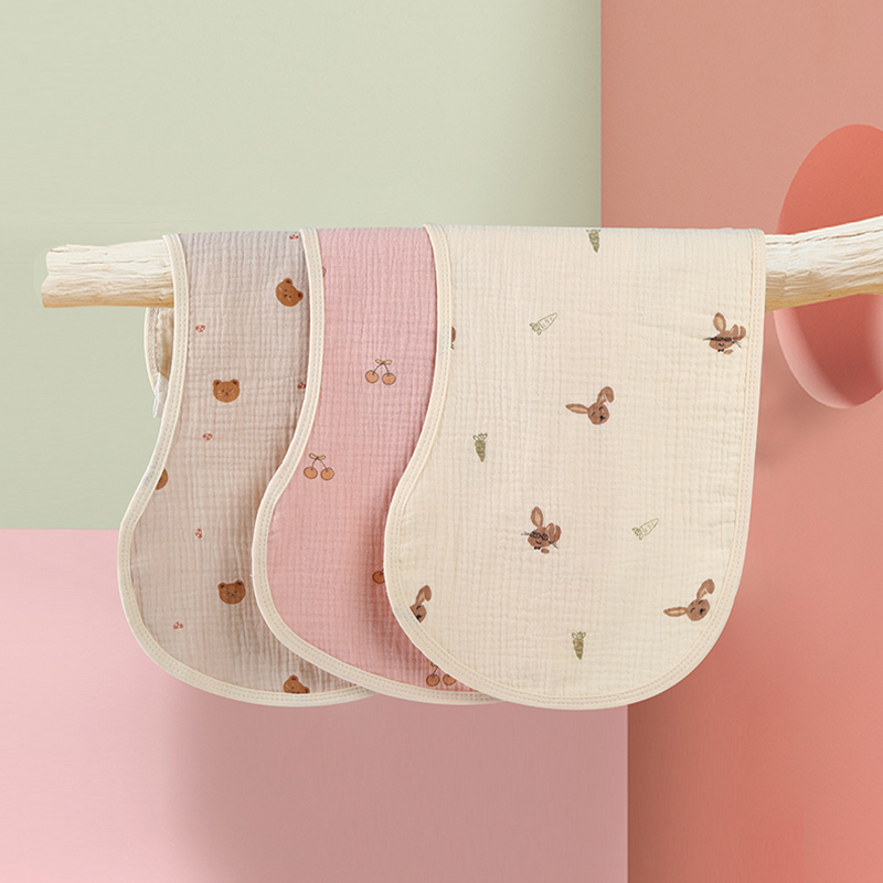 Crocheted printed burp blankets feature original cartoon prints on a soft crocheted fabric base, offering bright colors and fun to add enjoyment to your baby's mealtimes and care. Thick and absorbent, they effectively protect clothes from spit-up or drool, and are easy to clean. The naturally wrinkled fabric enhances its softness and provides a comfortable fit around the shoulders, making them easy for parents to handle. Combining practicality and aesthetics, these crocheted printed burp blankets are a versatile choice for daily care, travel, and photo opportunities, making every burp session gentle and playful.
