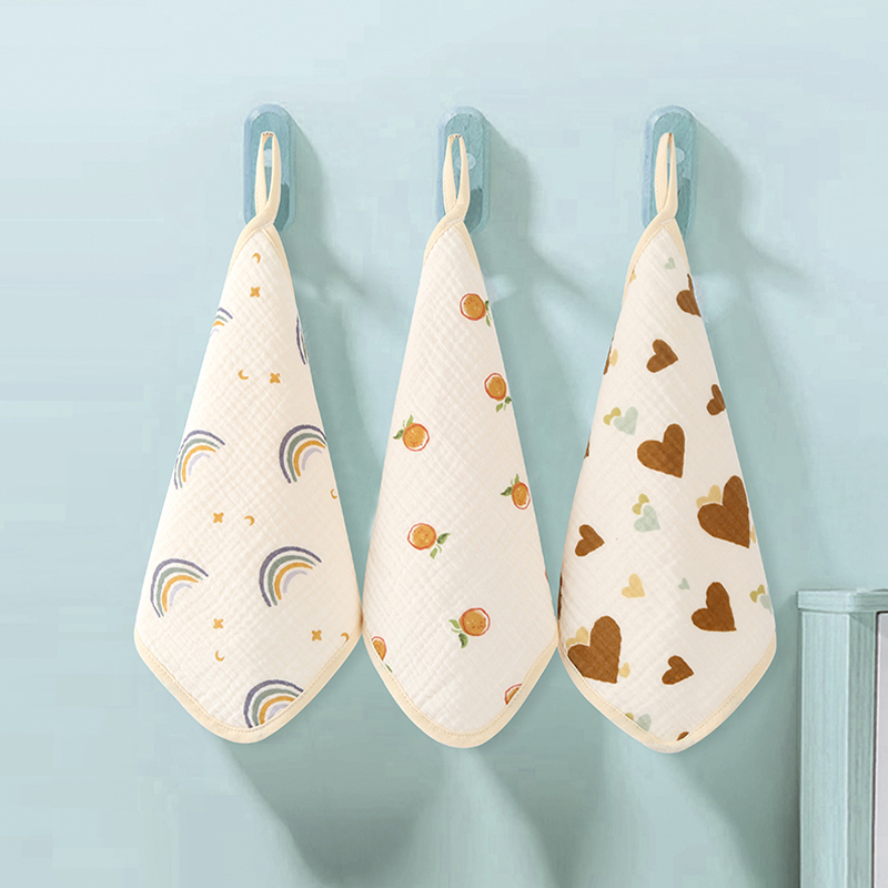 Printed baby washcloths are made from soft, pure cotton, offering a lightweight and comfortable feel with excellent absorbency, easily handling your baby's needs for wiping away sweat, drool, or after meals. The thoughtful design includes hooks for easy hanging to dry or carrying around to maintain cleanliness and hygiene. The surface features original cartoon prints in bright colors, full of fun and attracting your baby's attention while adding a touch of whimsy to daily life. Lightweight and portable, they are suitable for family, outings, or childcare use, combining practicality and style. These printed baby washcloths not only protect your baby's delicate skin but also make care more convenient, adding comfort and joy to your baby's daily life.