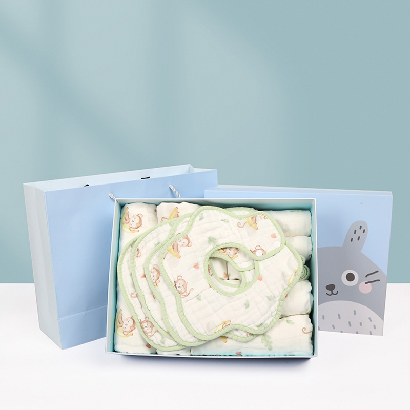 Gift set of ten baby blankets is made from carefully selected soft, skin-friendly pure cotton gauze. Lightweight and breathable, it has a delicate touch, gently caring for your baby's delicate skin. The gift box features a simple and elegant design, suitable for gifting or daily use, combining practicality and aesthetics. Each blanket can be freely combined in color and pattern to meet different preferences and individual needs, offering flexible and varied combinations to add fun. The gauze material is highly absorbent, suitable for wiping hands, face, or drool. Lightweight and portable, it's convenient for home, childcare, and outings. This ten-brush gift set is not only practical and durable but also makes daily care more organized, making it an ideal choice for your baby's daily life and as a gift, keeping your baby comfortable and dry every day.