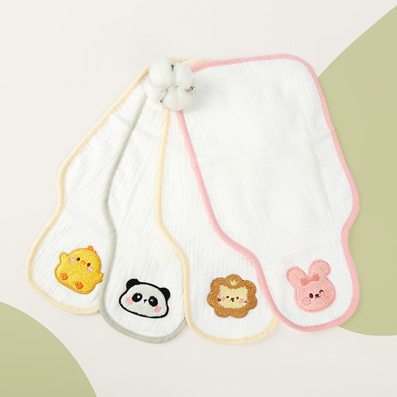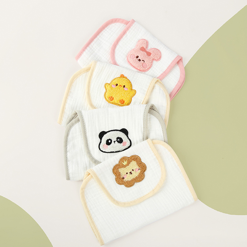 Cotton gauze cartoon sweat-absorbing towels are made of soft, pure cotton gauze with a unique moisture-wicking layer design. They quickly absorb sweat and drool over a large area, keeping your baby's skin dry and comfortable. The cotton gauze material is highly breathable, lightweight, and skin-friendly, causing no irritation to delicate skin and preventing stuffiness even after prolonged use. The lively and cute cartoon designs add fun to your baby's daily care routine. Lightweight and portable, easy to wash, quick-drying, and easy to maintain, these towels are suitable for family use, outings, or childcare. The cotton gauze moisture-wicking layer design ensures efficient sweat absorption and large-area moisture wicking, keeping your baby dry and comfortable all day long. They are an essential and practical item for daily care and outings.