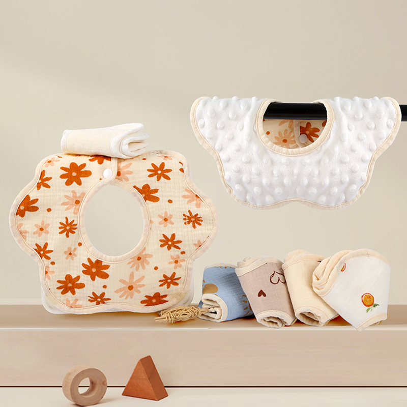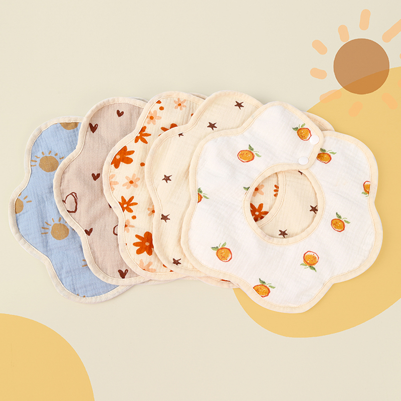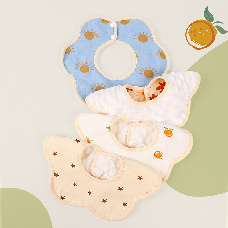 Plush petal bib is made of soft, skin-friendly plush fabric, offering a delicate and comfortable feel while gently protecting your baby's delicate skin. The bib features a unique design with edging in the same color as the fabric, creating a unified and aesthetically pleasing look. The 360-degree rotating petal shape conforms to the curve of the neck, offering flexible and convenient use while adding a touch of fun. Custom colors and patterns are available, allowing you to create a personalized bib to suit your individual preferences or style needs. Whether for daily meals, outings, or photoshoots, it quickly absorbs drool and food residue, keeping your baby dry and clean.